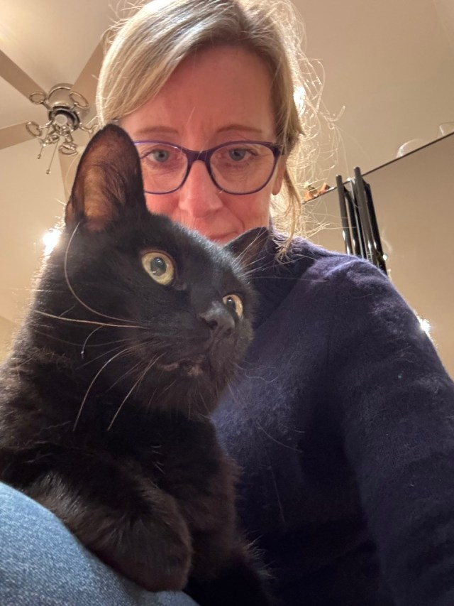 Driving you to Mum and Dads caused you so much anguish that I dreaded driving you over an hour away to our next house so I got drugs. For you, although I probably could have done with them too.  We (You) tried them out and the drugs did work…but only once, it turned out.  The trip to our new place was filled with your irate screeching.  So it’s a good job we were there quite a few months.  I worked from home a lot there.  You sat or slept near me at my desk a lot of that time.  You weren’t keen on Mr R going to London, so every time he laid out his shirt in preparation, you’d lie down on it and cover it with fur.  One time you got in the wardrobe and clawed all his shirts into an unwearable state. All of them 🤦🏼‍♀️