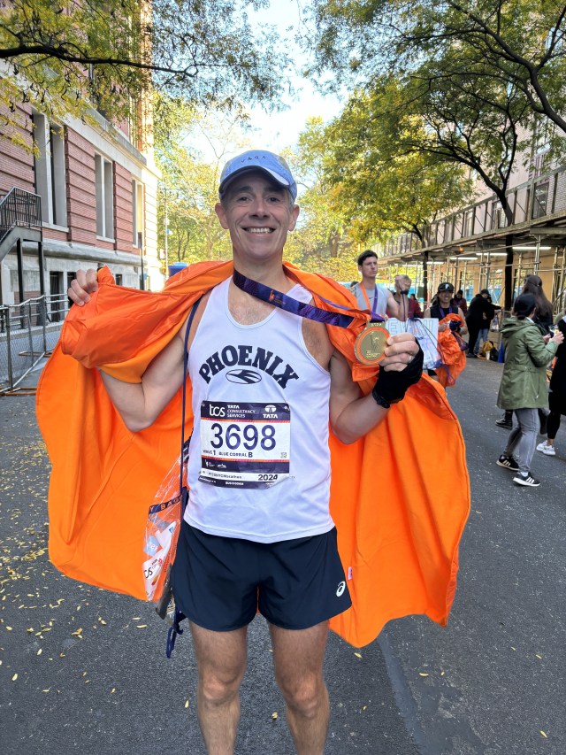 Himself ran the marathon in 2 hours 54 minutes and 58 seconds. That made him 57th out of 3453 in the 50-54 age group. He’s speedy.