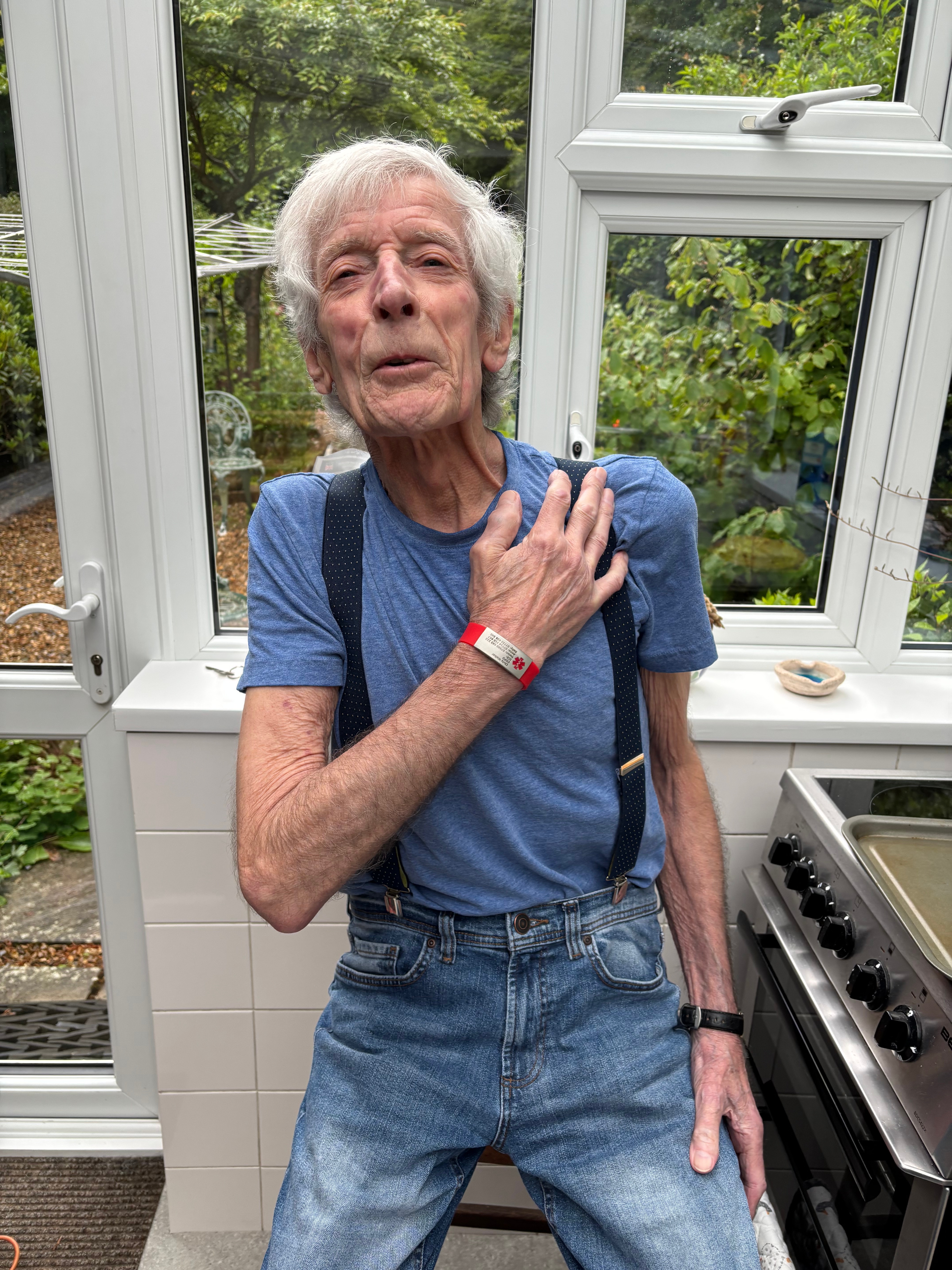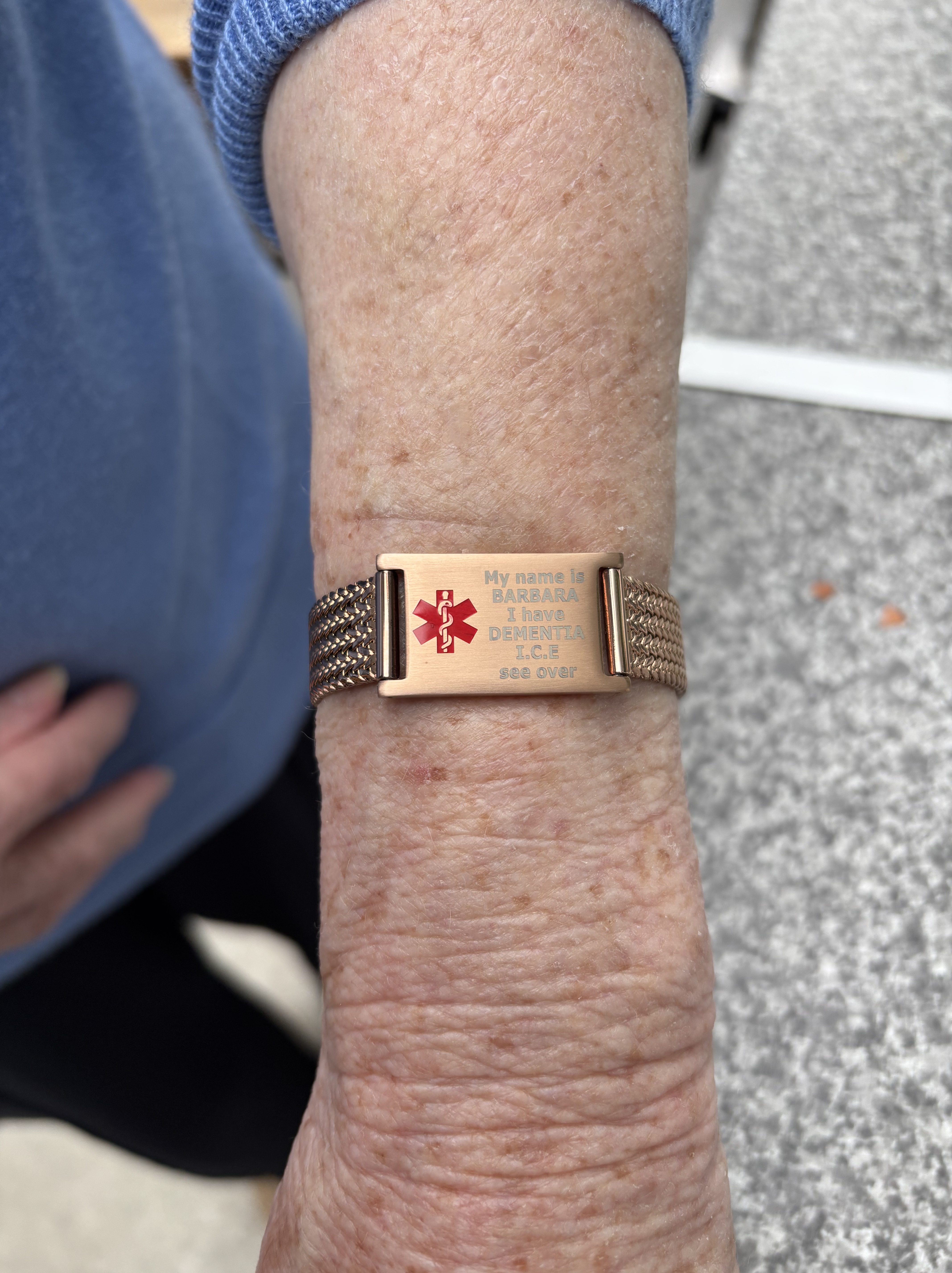 Mum and Dad live in what I suspect might be the last village in the UK to have no internet reception outside of houses with wifi, so a QR code wouldn’t work too close to home. But a standard ID bracelet would.