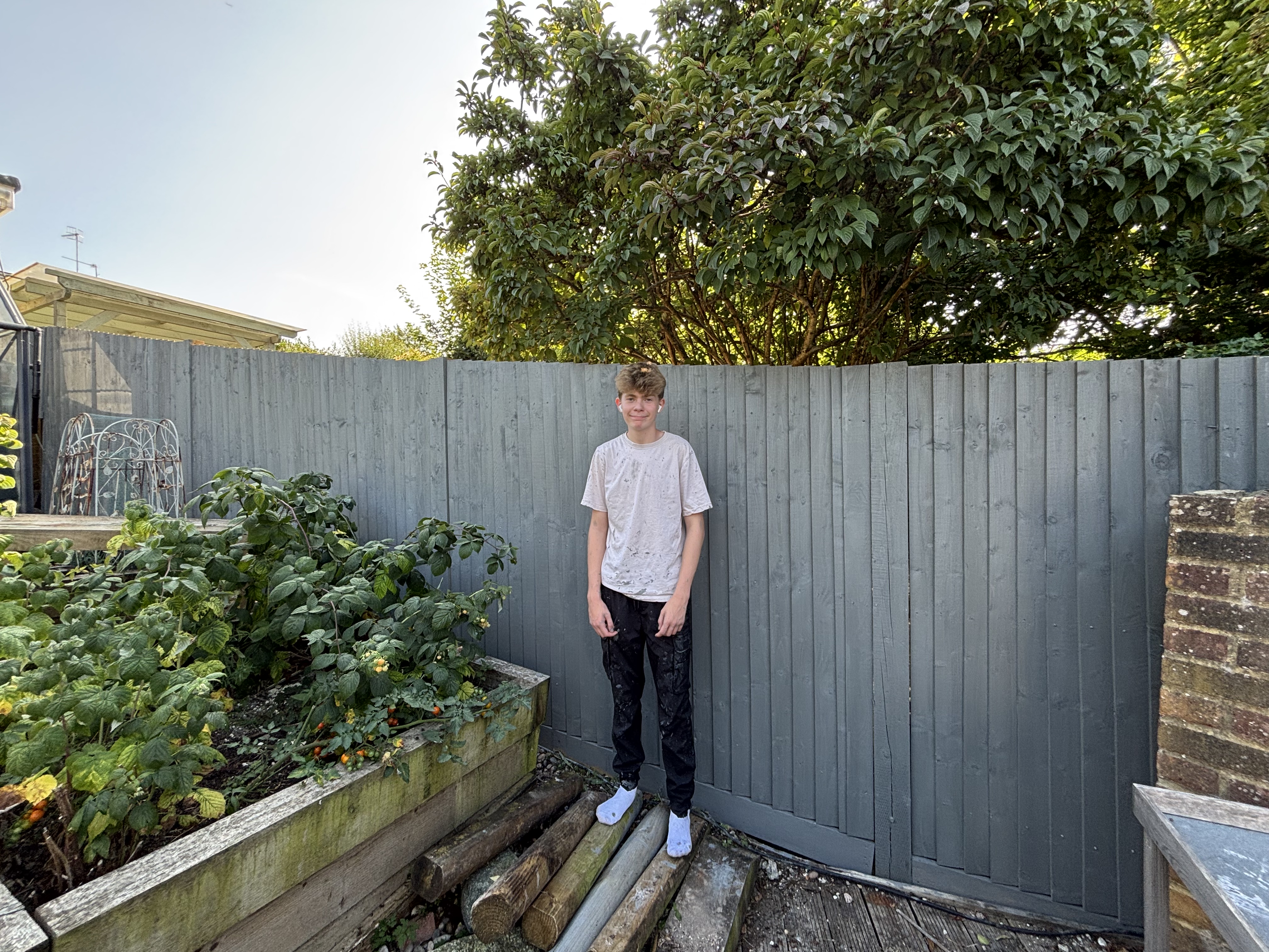 Unfortunately, this did give him time to secure a new girlfriend, and summer holiday dates require money, so he asked if there were any opportunities for paid work here….and spent last week painting our fence.