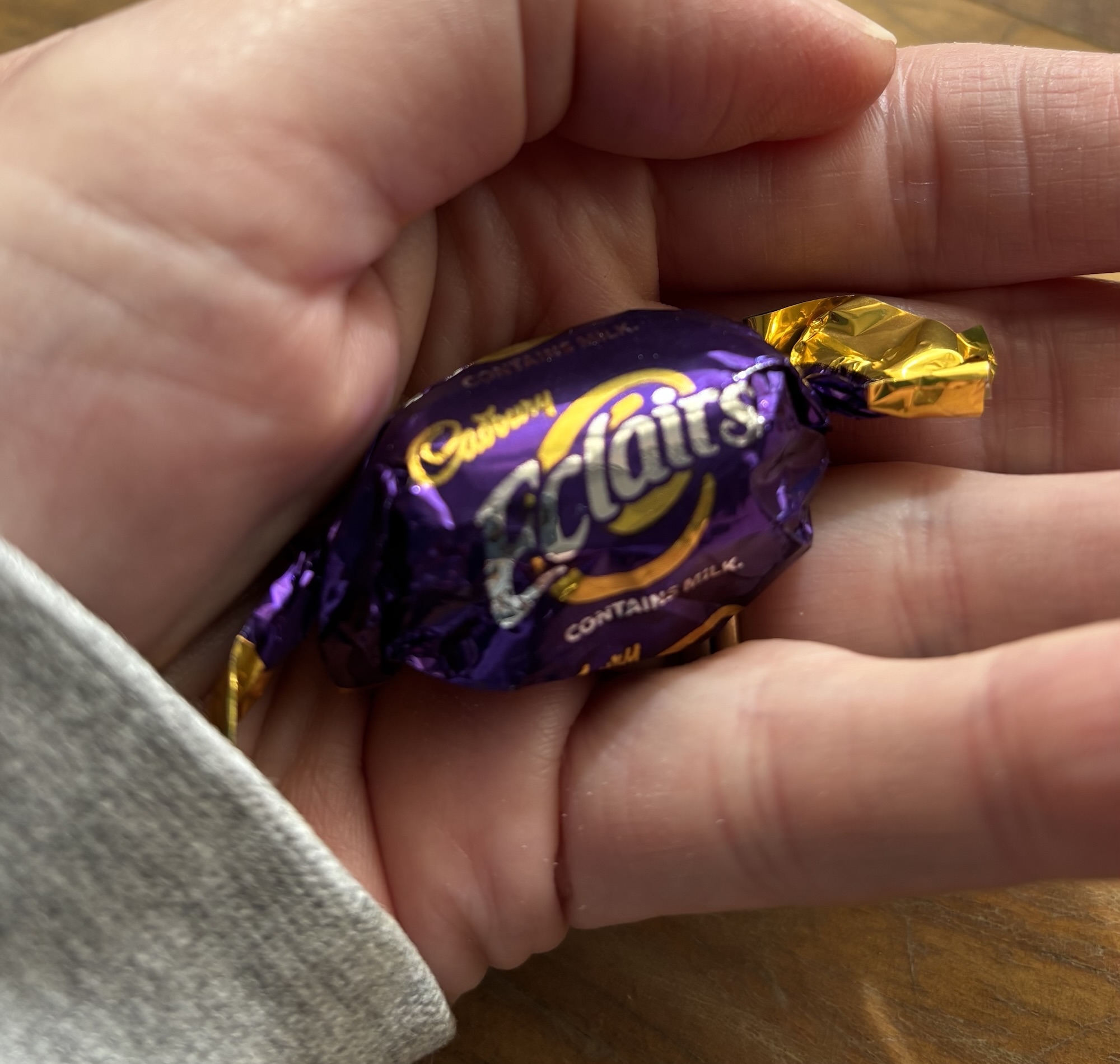 If you hold them in your hand, or just keep them close, Eclairs get a little softer, a little less hard on your teeth.