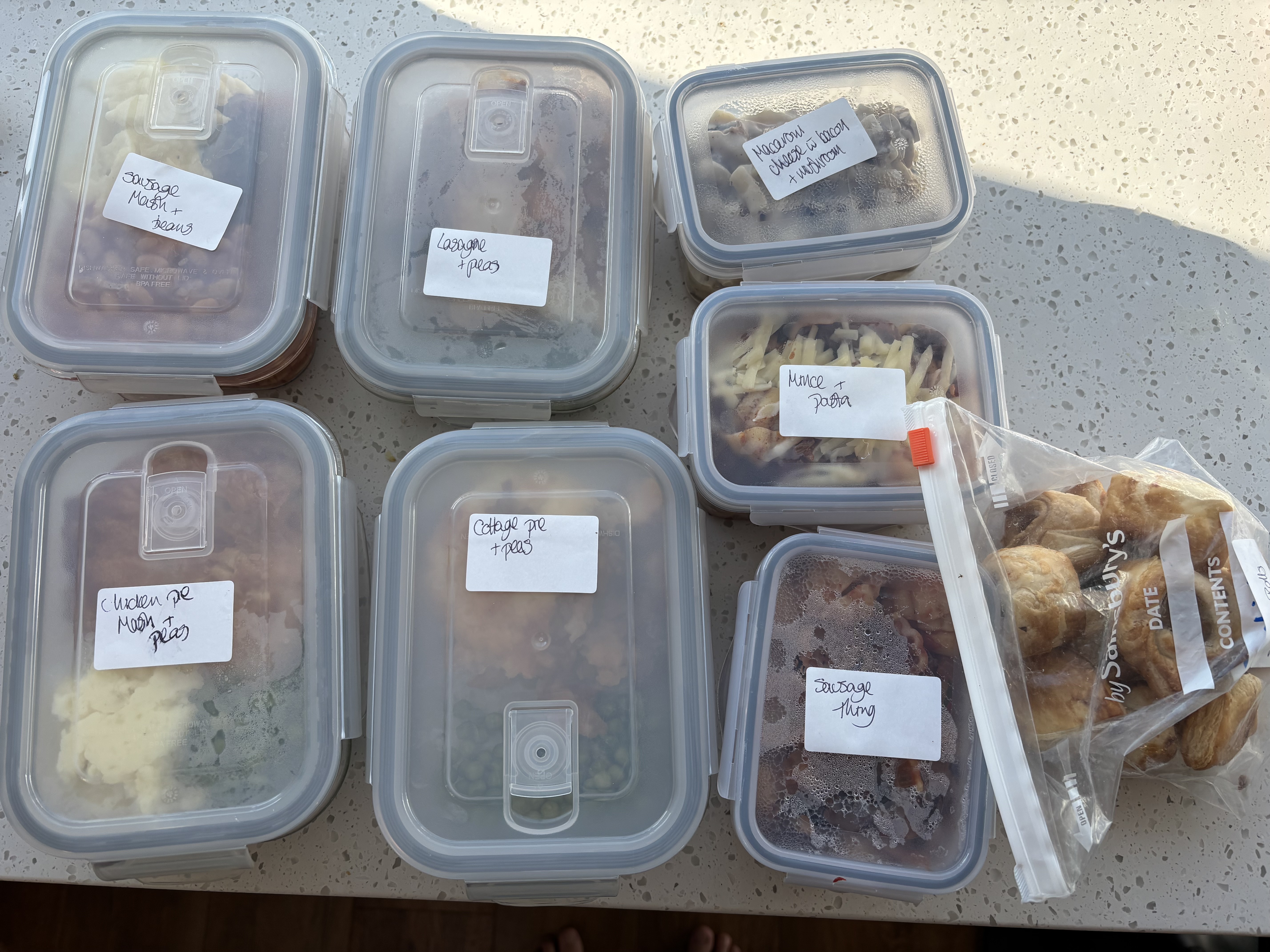 Extra tip: If you’re prepping meals for someone in need of calories, pop a blob of butter on the top of everything when you’ve prepped it up so that as it is microwaved it doesn’t dry out and there are a few more calories in the pot.