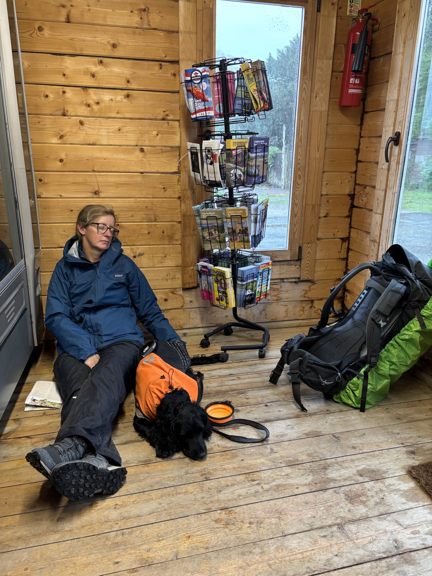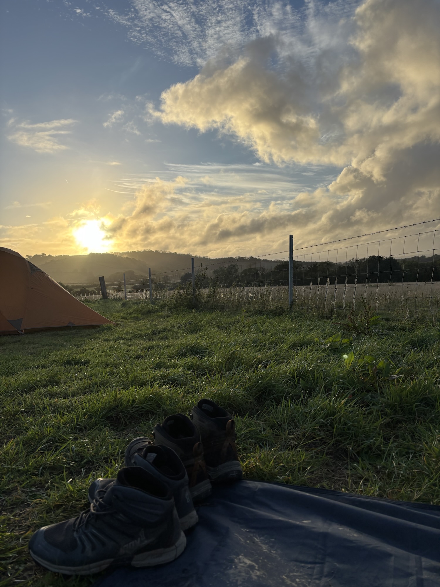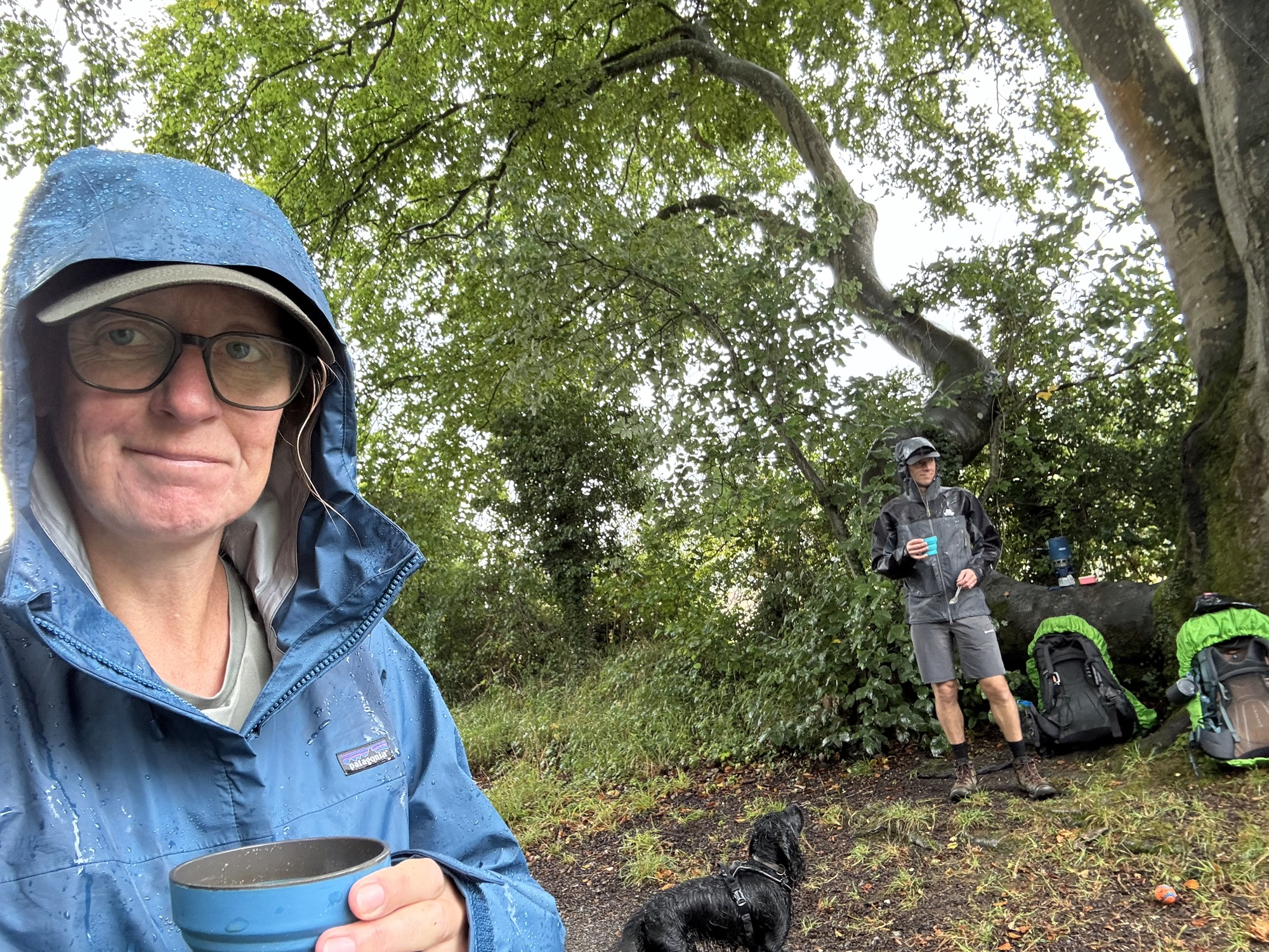 So we rigged the washing line up inside the two man and a dog tent and…both woke up with wet t-shirts on our faces. It was a little like being suffocated by dead fish.