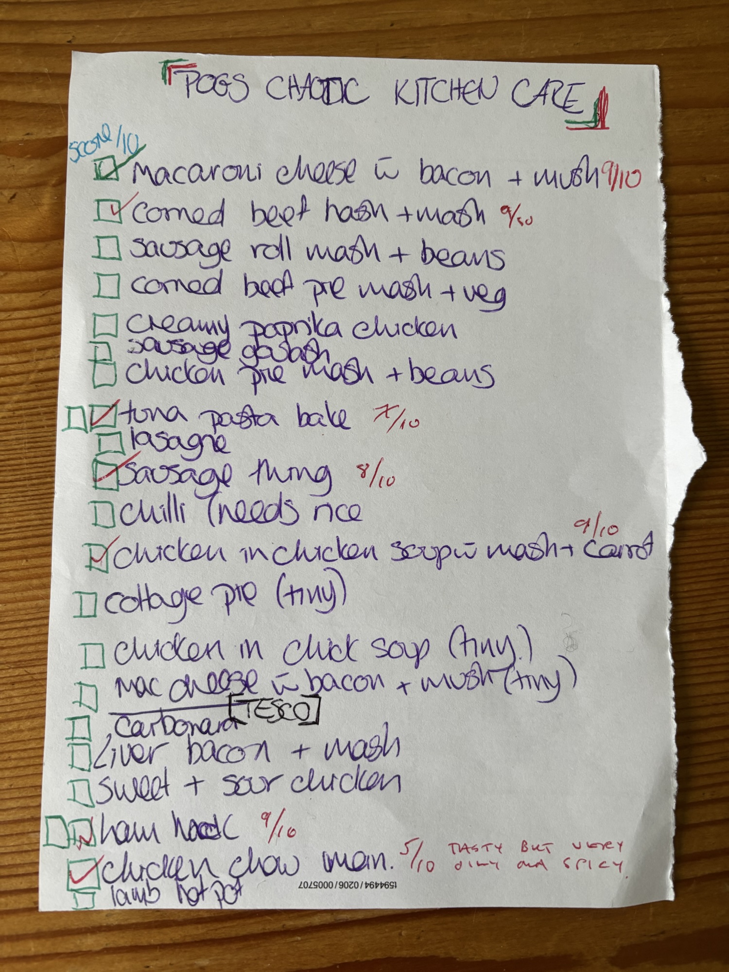 In that last post about Pog’s Chaotic Kitchen Care, I might have got a bit cocky. I thought we’d sorted Dad’s weight, he was on the up and I could cross that off my list.