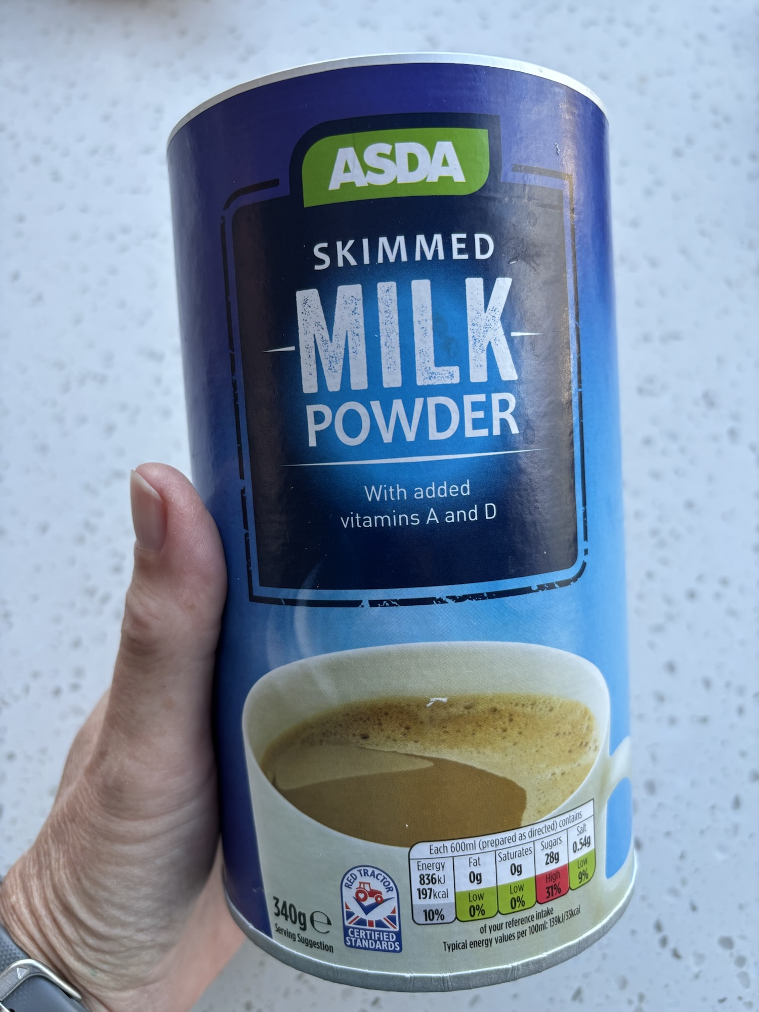 BUT we found a secret weapon! Mr R is training to be a nutritionalist. Not because he wants to be a nutritionalist you understand, that would be far too obvious. No, he’s training because he does big running races (50-100 mile types) and wants to properly understand how to fuel his body, so thought he’d learn for himself. And recently in his quest he completed a module on the elderly, and discovered the secret weapon. Powdered milk.